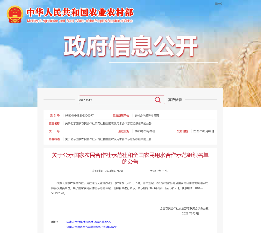 農(nóng)業(yè)農(nóng)村部發(fā)布消息稱,根據(jù)《國家農(nóng)民合作社示范社評定及監(jiān)測辦法》(農(nóng)經(jīng)發(fā)〔2019〕5號)有關(guān)規(guī)定,農(nóng)業(yè)農(nóng)村部會同全國農(nóng)民合作社發(fā)展部際聯(lián)席會議成員單位,開展了國家農(nóng)民合作社示范社評定,并對名單進(jìn)行公示,公示期為2023年3月9日至3月17日。