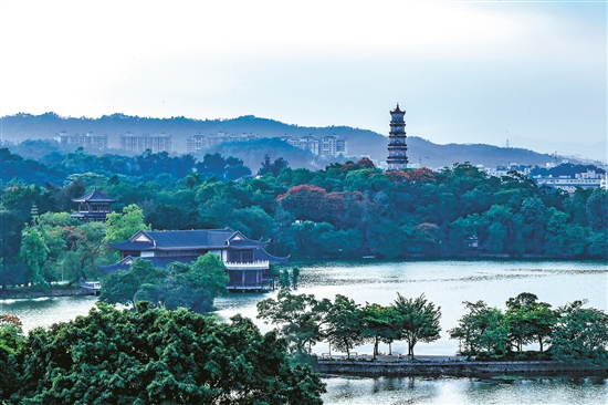 據(jù)相關(guān)記載,惠州西湖初辟于漢晉之際,筑于臨湖銀岡嶺上的東漢伏虎臺和東晉龍興寺,開啟了人文與自然在此結(jié)緣的漫長歷程。唐至五代,湖區(qū)又先后興建泗洲塔、 天慶觀、永福寺等。及至兩宋,保護(hù)、建設(shè)和利用西湖,已成為人們的自覺行動,景觀逐漸增多。
