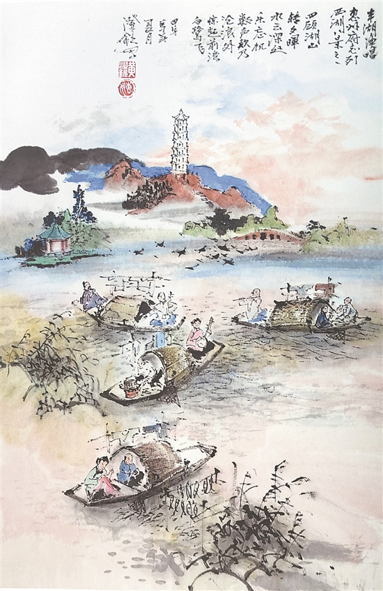 不僅有絕佳的自然風(fēng)景,“西湖八景”還氤氳著濃厚的民間生活氣息。周邊居民近取湖利,亦漁亦農(nóng),朝耕暮漁。他們出湖打魚撈蝦,入城賣菜買肥,棹舟一葉,穿梭往返于西湖碧波中。獨(dú)特的生活方式和優(yōu)美的生態(tài)環(huán)境,孕育了充滿鄉(xiāng)土氣息和古城風(fēng)情的“豐湖漁唱”;“半徑樵歸”也是如此,寫出了西湖人家過著半農(nóng)半商、自適其適的生活。