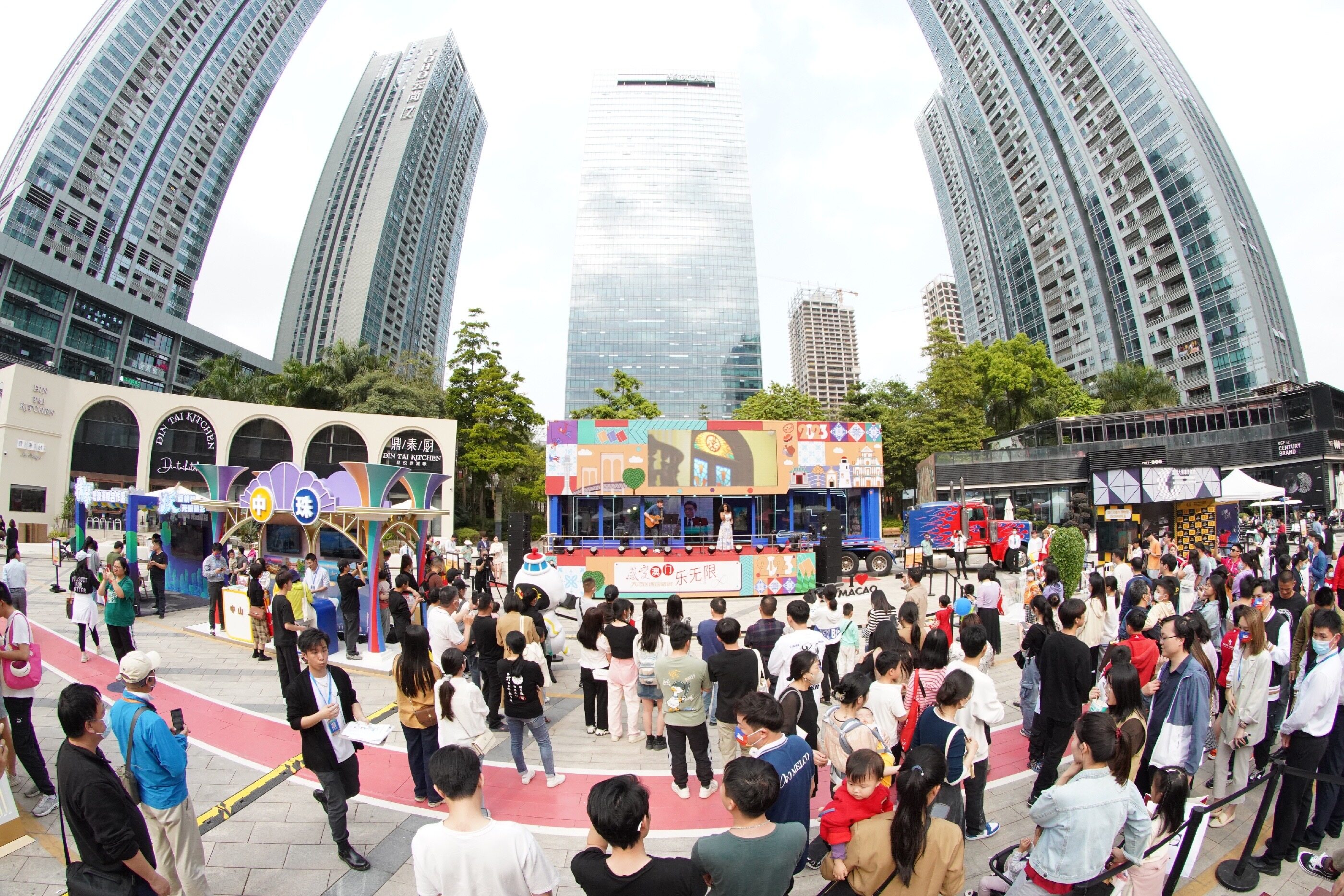 華貿天地中央廣場設置一輛矚目的大篷車,化身舞臺呈獻精彩表演及觀眾互動環(huán)節(jié),旅游局特別安排展現澳門中葡文化特色的歌唱及舞蹈表演,帶動現場熱鬧氣氛。大篷車上特設虛擬實景(VR)體驗區(qū),讓當地居民以不同的角度欣賞澳門世界遺產景點及感受“幻彩耀濠江”的盛事氣氛。此外,互動區(qū)設有打卡主題背景、涂鴉墻、互動展覽廳、游戲攤位、親子工作坊及光雕表演等,讓當地居民感受澳門豐富多元的“旅游+”樂趣。