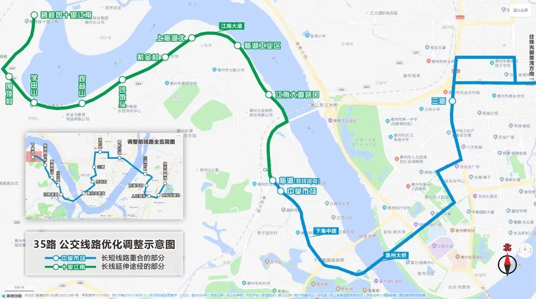 調(diào)整35路由梅湖延伸經(jīng)惠新大道、江南大道至碧桂園十里江南公交首末站。