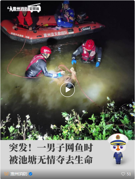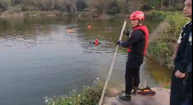 到達現(xiàn)場后,消防員與民警了解情況得知該男子橫渡池塘撒網(wǎng)捕魚時,突發(fā)狀況掙扎求救。岸邊目擊者由于不會游泳,立即到人員密集處大聲呼救并撥打110電話報警求助,但回來時已不見男子身影。