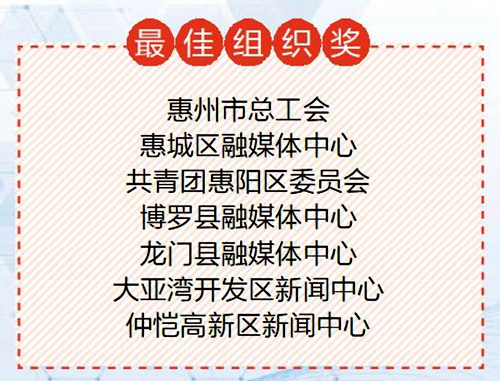 講好惠州故事、推介城市形象。近日,“話說惠州”短視頻大賽獲獎(jiǎng)名單新鮮出爐,最終評(píng)出一、二、三等獎(jiǎng)作品共9個(gè),優(yōu)秀獎(jiǎng)作品60個(gè),最佳組織獎(jiǎng)7個(gè)。當(dāng)天的活動(dòng)對(duì)“話說惠州”短視頻大賽獲獎(jiǎng)?wù)叽磉M(jìn)行了現(xiàn)場(chǎng)頒獎(jiǎng)。
