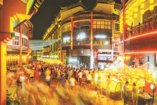 每個(gè)夜晚,燈火輝煌的水東街人頭攢動。這條剛上榜國家級旅游休閑街區(qū)的歷史文化街區(qū),短短730米距離卻見證著東江商埠風(fēng)云與多元文化交匯的源遠(yuǎn)文脈。白天,延綿的騎樓建筑令人眼花繚亂,夜幕華燈下,夜演、夜讀、夜游、夜展、夜購、夜宴、夜市、夜宿等為一體的文旅新“夜”態(tài),造就千年“古”商埠煥發(fā)“新”魅力。513家商家中,有80%以上商戶營業(yè)時(shí)間均超過21時(shí)。2022年,水東街游客及消費(fèi)者數(shù)量超過450萬人次,文商旅消費(fèi)收入近9億元。
