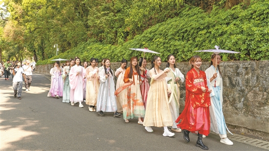 喜愛登山踏青的游客或到“天然氧吧”南昆山賞花踏青泡溫泉,在這里,一年四季皆可泡溫泉;或在羅浮山跟著博羅文廣旅體局副局長謝文山的代言,循“嶺南醫(yī)祖”葛洪的印記,探尋“青蒿抗瘧”的奧秘。3月11日,在“羅浮山國風(fēng)女神節(jié)”效應(yīng)下,不少游客就身著一襲華裳,步履輕盈地打卡玉宇瓊樓,或行曲徑通幽,或賞柳綠花紅,暢游在羅浮山之中。