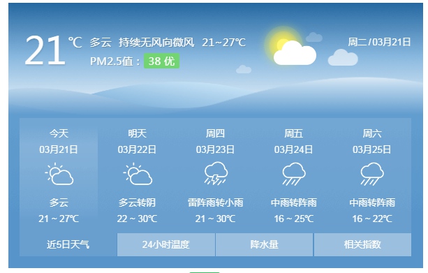 惠州日報訊 (記者周智聰)市氣象臺3月20日16時45分發(fā)布惠州重大氣象信息。預(yù)計3月21~22日我市各地陰天間多云,最高氣溫27~30℃;23~24日將出現(xiàn)今年首場強(qiáng)對流過程,并伴有短時強(qiáng)降水、雷雨大風(fēng)和局地冰雹等強(qiáng)對流天氣,其中23日陰天有雷陣雨,局部大雨,24日中到大雨局部暴雨;展望25~27日,受冷空氣影響,轉(zhuǎn)穩(wěn)定性降水,雨勢總體平緩,氣溫偏低,日溫差小。