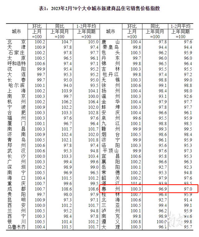 近日,國家統(tǒng)計局公布《2023年2月份70個大中城市商品住宅銷售價格變動情況》。數(shù)據(jù)顯示,2月份新建商品住宅銷售價格環(huán)比上漲城市達(dá)55個,較1月分別增加19個,其中,新春供需市場穩(wěn)步回暖的惠州新建商品住宅銷售價格環(huán)比上漲0.3個百分點(diǎn)。
