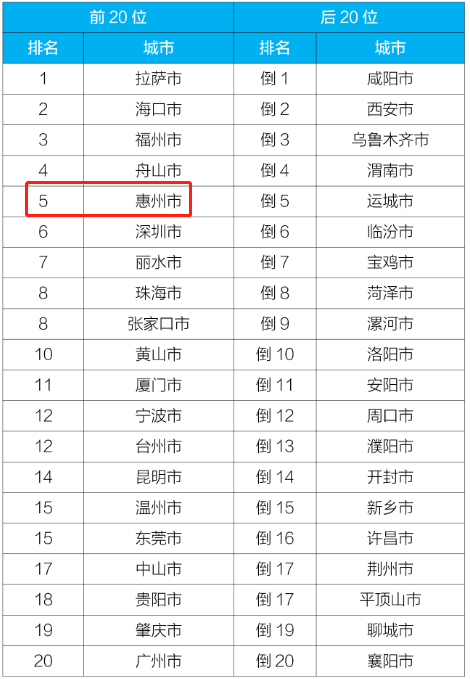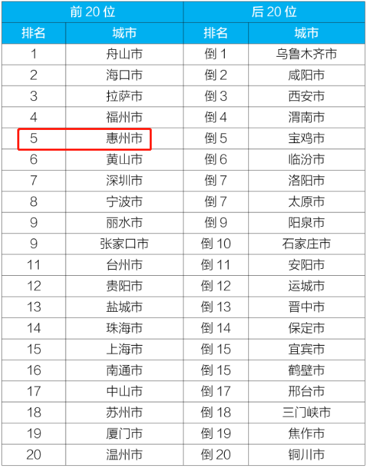 惠州的空氣質(zhì)量均排名全國第5