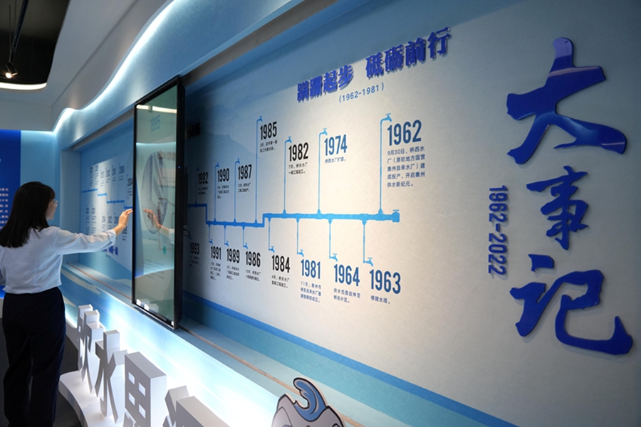 惠州供水文化展覽館位于江北云山東路27號(hào)惠州水務(wù)集團(tuán)大院內(nèi),以實(shí)物、文字、圖片等形式,梳理惠州城市供水發(fā)展歷史,展示惠州供水當(dāng)前取得成就。據(jù)了解,惠州市區(qū)供水歷史緣起于1962年9月建成的橋西水廠(chǎng),當(dāng)時(shí)日供水量不足千噸的小水廠(chǎng),經(jīng)過(guò)逾60年的發(fā)展,如今已成為擁有9座水廠(chǎng)、日供水量百萬(wàn)噸的大型現(xiàn)代化企業(yè)。為了銘記歷史,記錄市區(qū)供水伴隨城市建設(shè)而孕育誕生、發(fā)展壯大的歷程,惠州市供水有限公司自2022年8月起籌建該展館,歷時(shí)半年建成對(duì)外開(kāi)放。