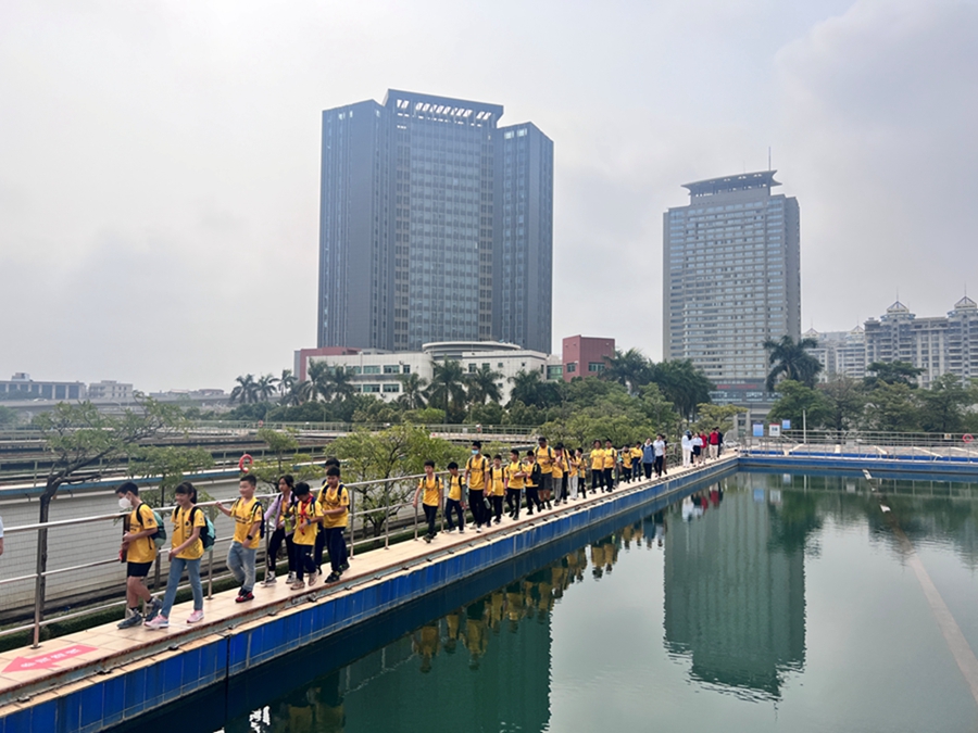 中小學(xué)生參觀(guān)江北水廠(chǎng)。