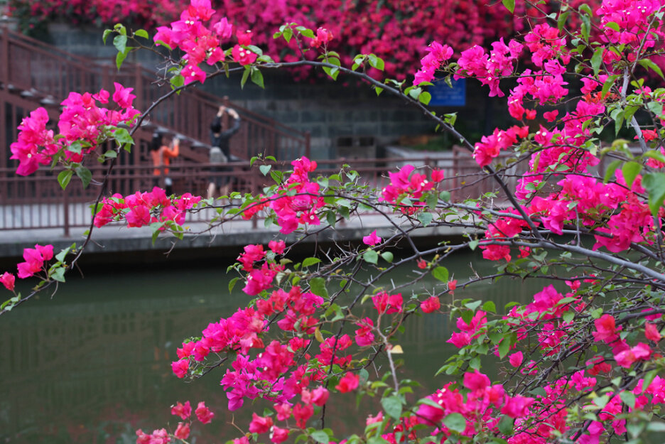 姹紫嫣紅的三角梅競(jìng)相開(kāi)放,吸引市民前來(lái)觀光“打卡”。