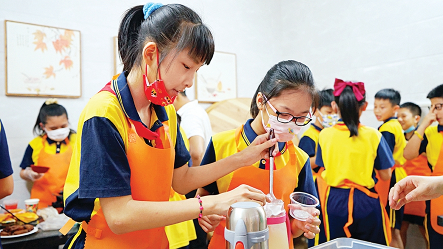 雙減下的精彩校園——學(xué)生參加勞動(dòng)廚藝課堂。