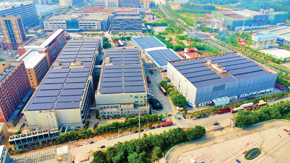 在東江高新科技產(chǎn)業(yè)園,廣東雪榕生物科技有限公司的廠房屋頂上,太陽能光伏板整齊排列,在陽光照耀下熠熠生輝,把太陽能轉(zhuǎn)化為電能輸向該公司的各項(xiàng)用電設(shè)備。