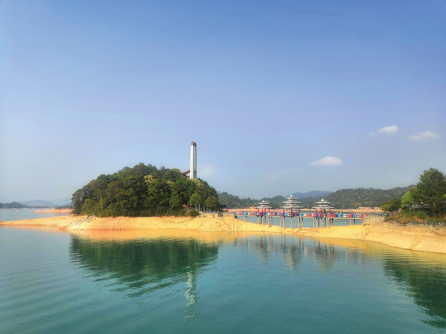 在萬綠湖邊環(huán)湖漫步,大家完全被眼前的翠林綠湖美景所吸引,湖中的小島天然秀美,像一顆顆珍珠散落在碧波蕩漾的湖面上,太美了。大家紛紛拿出手機(jī)拍下了“吊索道通關(guān)”“湖中游船,飛艇穿梭”“仙緣橋廊”“天空之鏡”等美景,不由得感慨:身臨其境,真正領(lǐng)略了萬綠湖美不勝收的湖光山色,才能理解萬綠湖“天上瑤池水,人間萬綠湖”的美稱。