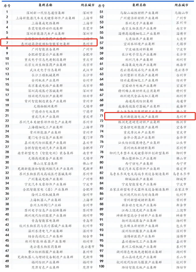 惠州兩大產(chǎn)業(yè)集群上榜2023中國(guó)百?gòu)?qiáng)產(chǎn)業(yè)集群