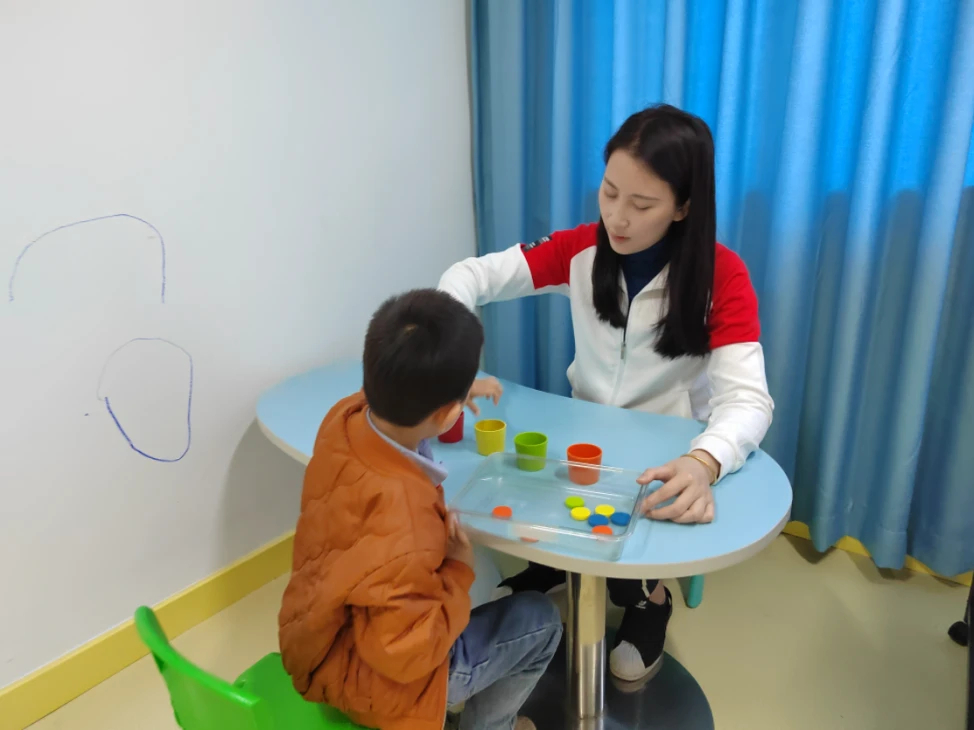 高丹為孤獨癥兒童進(jìn)行康復(fù)訓(xùn)練。