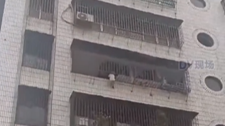 博羅一位三歲男童頭卡5樓防盜窗