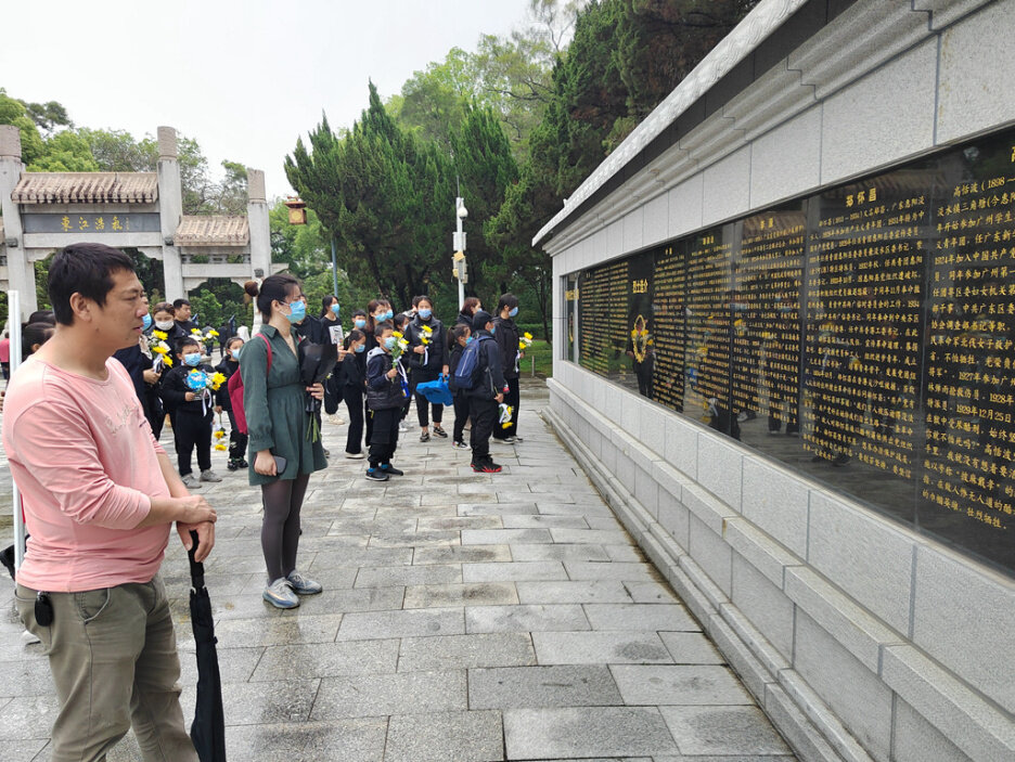 惠州學(xué)院的學(xué)生來(lái)到東江人民革命烈士紀(jì)念碑前聽(tīng)東江人民革命故事。