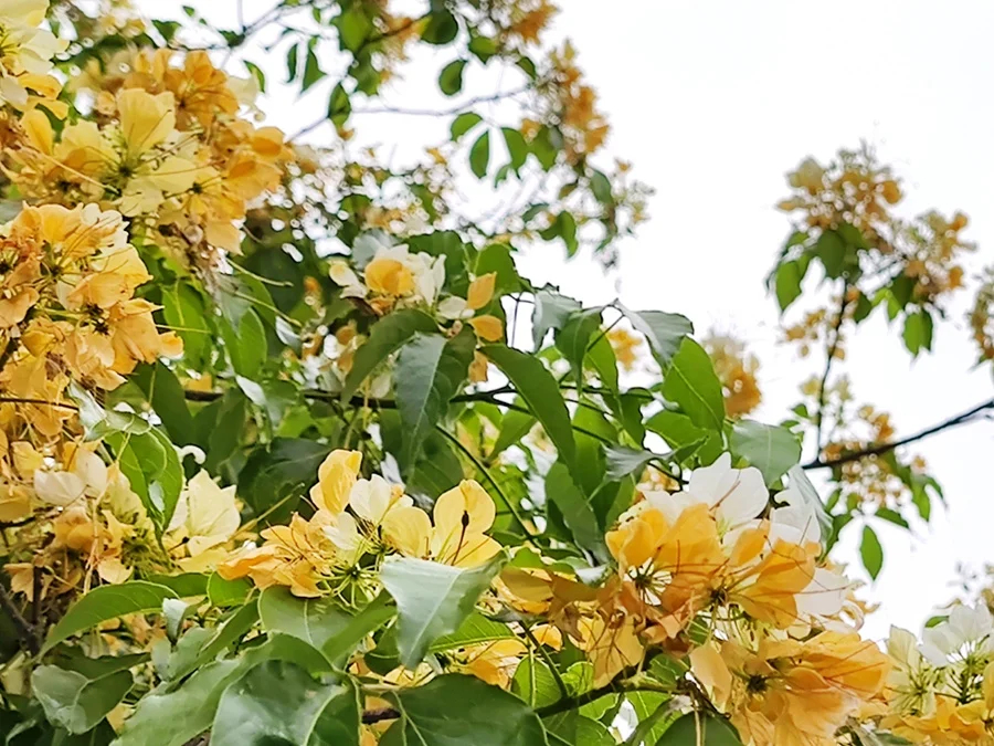 此時還能欣賞到魚木花和簕杜鵑絢爛共舞的美景。