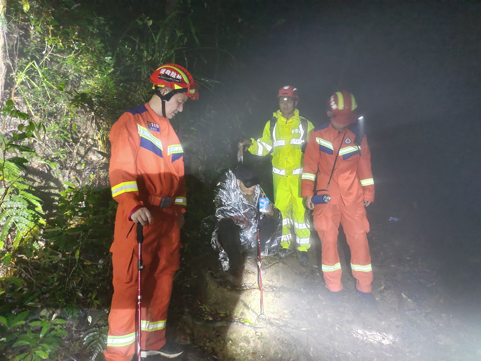 4月3日上午8時許,這名男子自行前往白云嶂盤古廟游玩,在山頂迷路無法下山,被救援人員發(fā)現(xiàn)時,已被困山上一天一夜,身體開始缺水、虛弱、體力透支,但身體未受傷。救援人員在了解被困人員情況后,對其進(jìn)行安撫,并囑咐其保持體力,保持電話暢通原地等待救援,有突發(fā)情況及時與救援隊聯(lián)系。