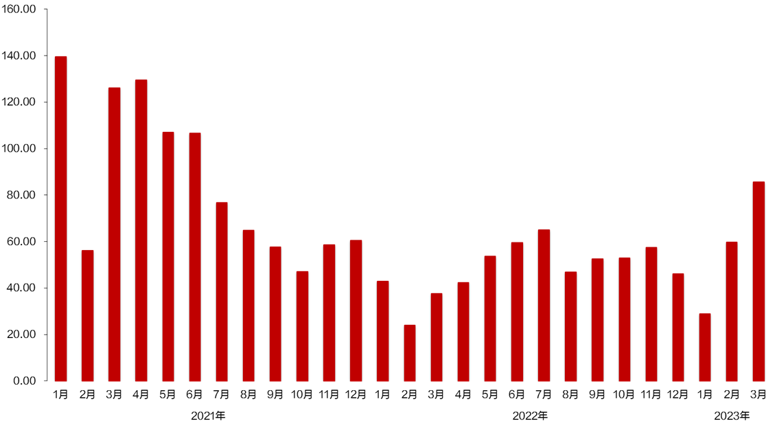 時(shí)間跨度拉長(zhǎng)至一季度,該機(jī)構(gòu)數(shù)據(jù)顯示,2023年1~3月全市新建商品住宅網(wǎng)簽套數(shù)為16140套,網(wǎng)簽面積為174萬(wàn)平方米,網(wǎng)簽面積環(huán)比上升11.35%,同比上升68.05%,網(wǎng)簽市場(chǎng)表現(xiàn)創(chuàng)下近6個(gè)季度新高。3個(gè)月交易房源規(guī)模分別為2726套、5563套、7851套;供應(yīng)房源規(guī)模則分別為1520套、1779套、5394套。