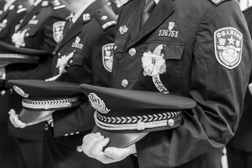 4月14日上午,廣東省惠州市龍門(mén)縣公安局因公犧牲民警鐘明超同志遺體告別儀式在惠州市殯儀館舉行,F(xiàn)場(chǎng)莊嚴(yán)肅穆、哀樂(lè)低回。在“沉痛悼念鐘明超同志“的電子屏下,懸掛著鐘明超同志的遺像,遺體安臥在鮮花叢中,鮮紅的黨旗覆于胸前。參加告別儀式的全體同志肅立脫帽,頷首默哀,依次瞻仰遺容,沉痛含淚告別鐘明超同志。全省公安機(jī)關(guān)通過(guò)視頻會(huì)議,在省廳機(jī)關(guān)、全省各地市、各縣(區(qū))和各基層所隊(duì)為鐘明超同志默哀送別。
