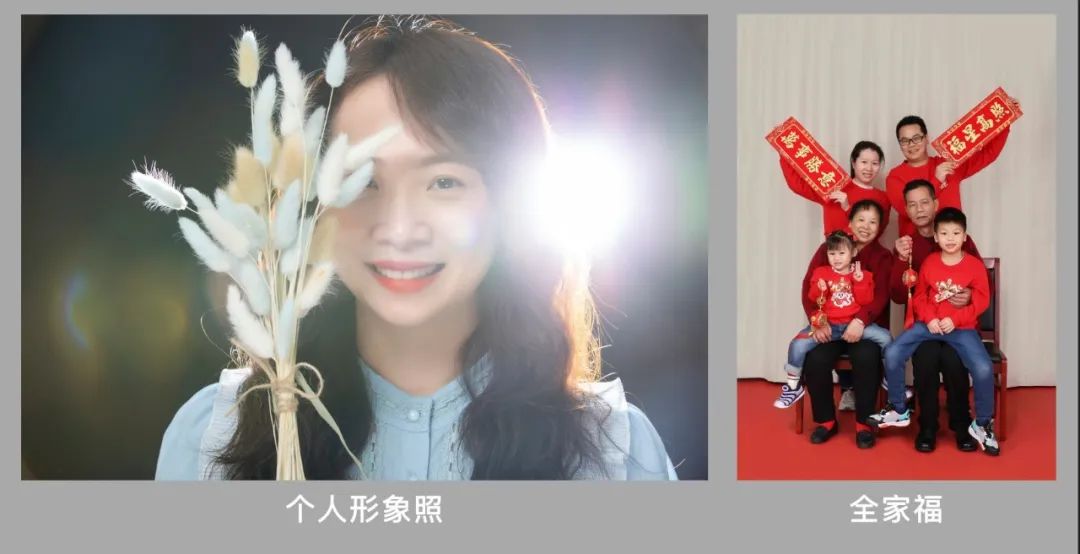 可選個人形象照、全家福,如您選擇拍攝全家福,只需一人報名即可,具體圖片樣式參照下圖:
