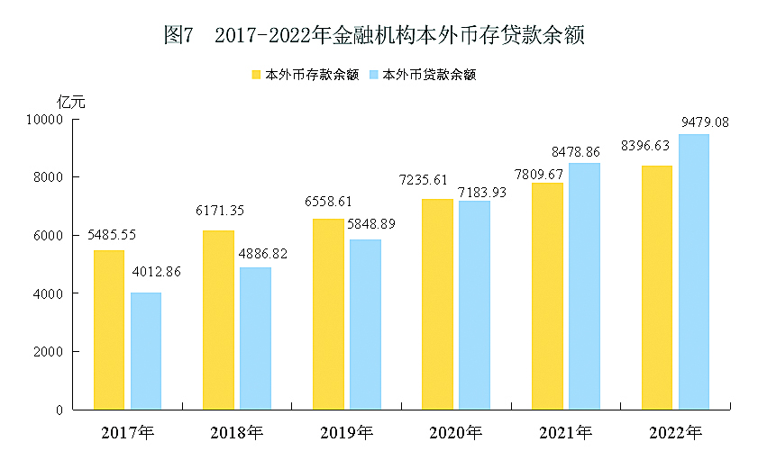 年末全市金融機構(gòu)本外幣存款余額8396.63億元,比上年增長7.5%。其中人民幣各項存款余額7787.39億元,增長7.9%。全市金融機構(gòu)本外幣貸款余額9479.08億元,增長11.8%。其中人民幣各項貸款余額9093.68億元,增長12.3%。