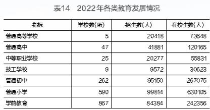 全市參加當(dāng)年高考被錄取的學(xué)生人數(shù)44991人;本地普通高等院校招生20418人,普通中學(xué)招生137031人,小學(xué)招生99814人。全市共有各級各類學(xué)校數(shù)1812所。