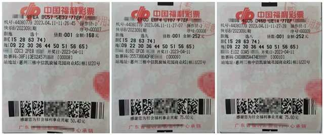 4月11日,惠州彩民林先生(化姓)采用快樂8復式膽拖投注方式,用同一組號碼,購買了第2023091期“選十四膽拖9碼”,“選九四膽拖9碼”和“選八四膽拖9碼”三種玩法的彩票各一張。三張票均分別中出多個中獎級別的大小獎,中得352825元、287483元和59250元金額不等的獎金,該彩民共攬得中獎總獎金69.96萬元,收獲頗豐。