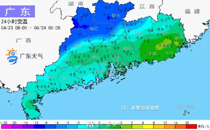 北方弱冷空氣24日南下,已經(jīng)影響到韶關(guān)、清遠(yuǎn)、連山一帶,24小時(shí)降溫最猛出現(xiàn)在連山,下降了9.2℃,陽(yáng)山下降8.7℃、韶關(guān)下降8.4℃.....