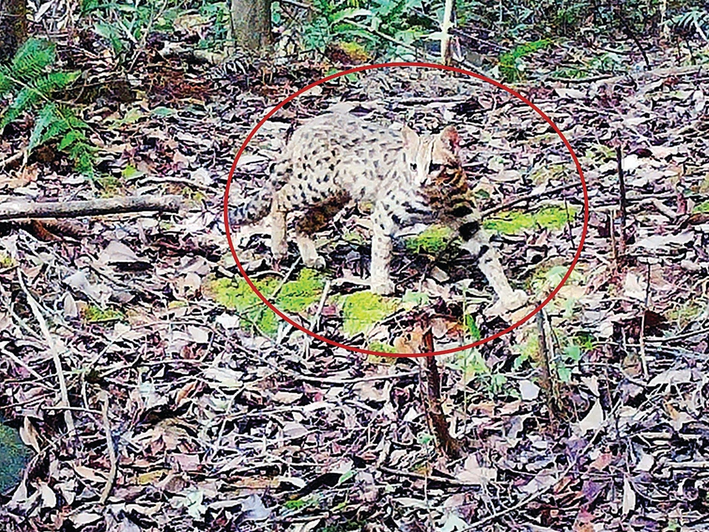 “看,這個鏡頭拍到的就是國家二級重點保護動物——豹貓。它們身上的斑點很像銅錢,因此也被稱為‘銅錢貓’!痹摫Wo區(qū)有關(guān)負責(zé)人指著紅外相機拍攝的素材介紹說,豹貓的體型與家貓相仿,但豹貓更加纖細,腿更長。它們喜歡獨居,善于攀爬和游泳。畫面中的豹貓十分矯健,在山地林區(qū)、郊野灌叢和林緣村寨附近行走和覓食。