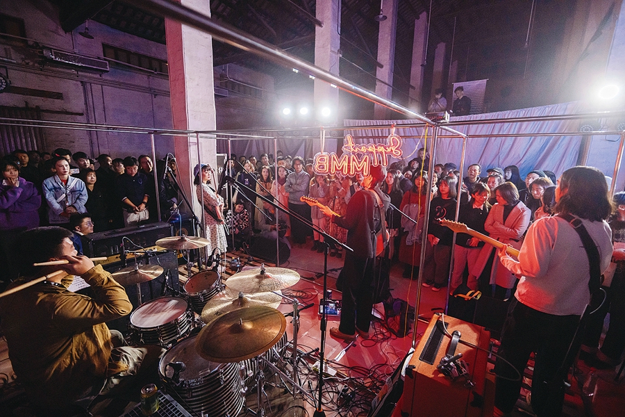 東坡亭糧倉(cāng)舊址內(nèi)的一場(chǎng)夜間音樂(lè)會(huì)。