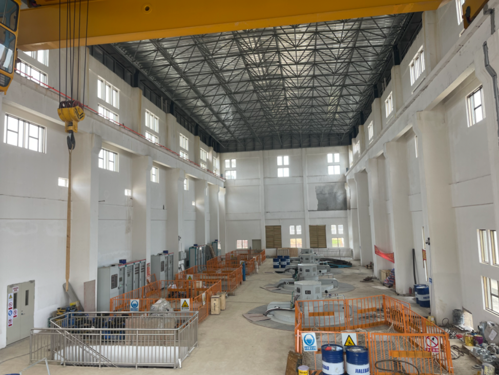 白花河防洪排澇治理工程項(xiàng)目控制性工程鎮(zhèn)區(qū)泵站(內(nèi)部)。