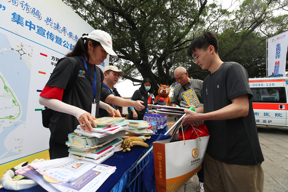 市民踴躍領(lǐng)取“全民反詐”宣傳資料。