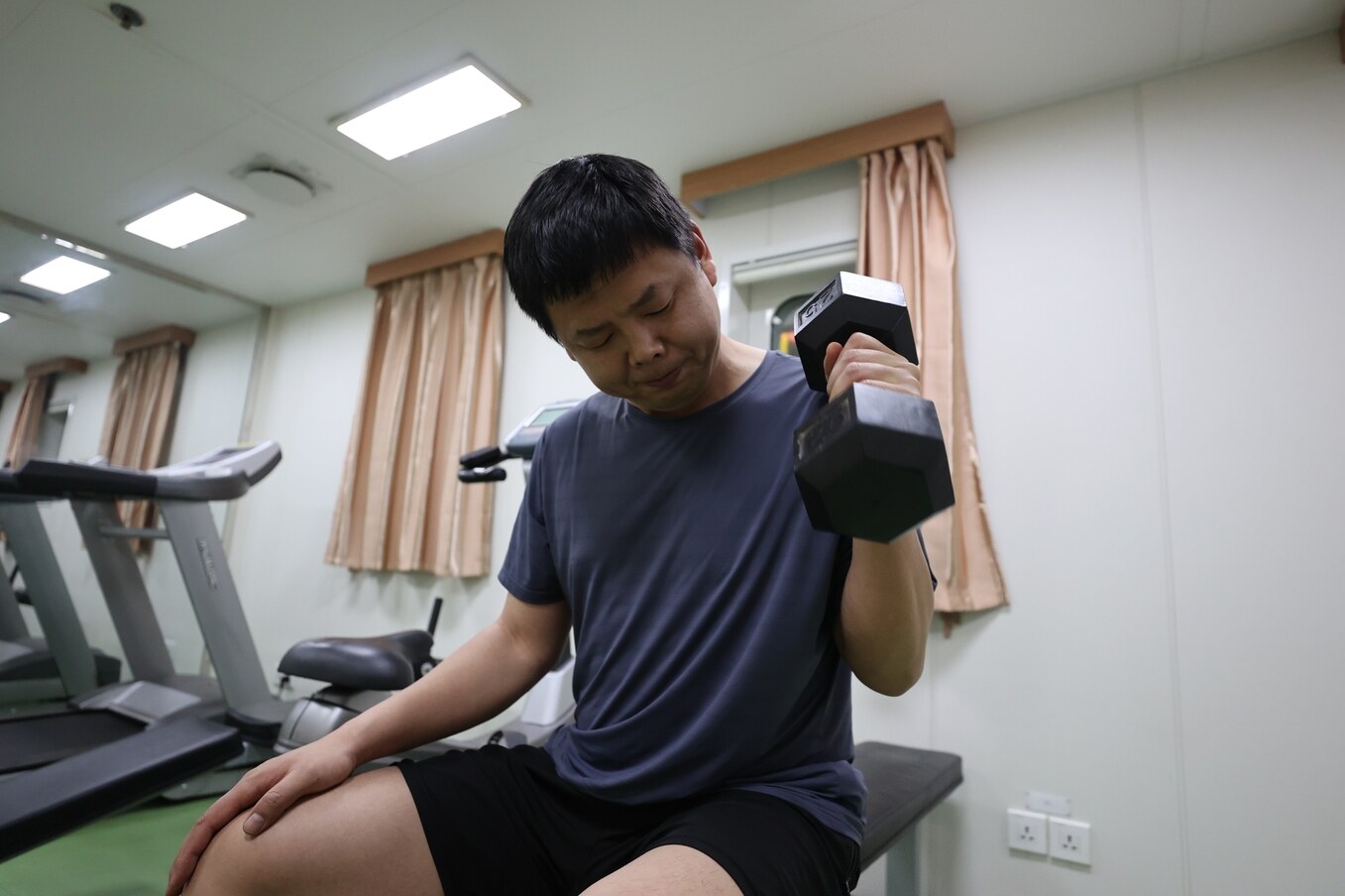 彌智強(qiáng)在健身房鍛煉。