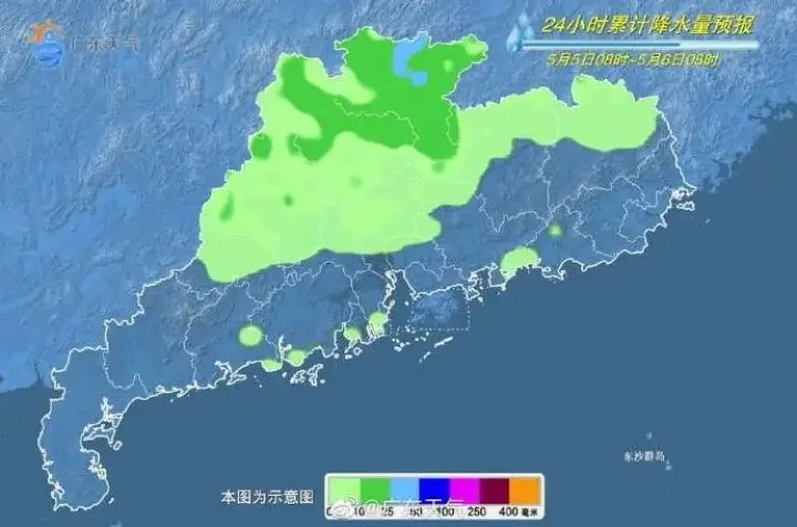 預(yù)計(jì)4日至5日,廣東省大部市縣多云間陰天,早晚有(輕)霧,各地氣溫逐日回升、濕度加大;而6日至7日,廣東省將有一次大雨到暴雨、局部大暴雨并伴有強(qiáng)對(duì)流的天氣過(guò)程。