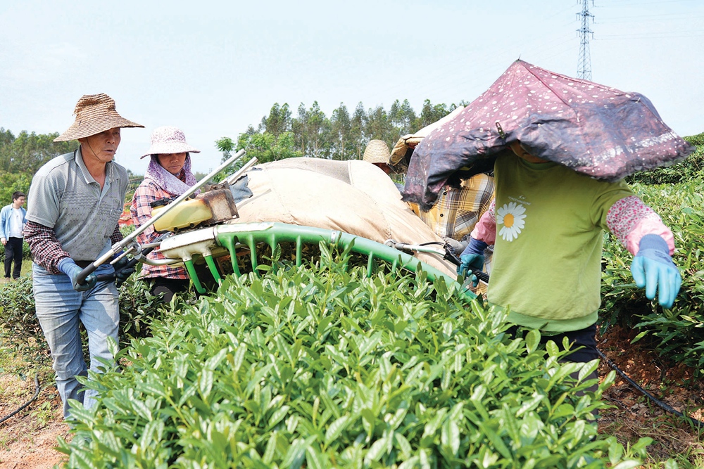 惠州市花海茶園(巖茶)的工人使用機(jī)械采摘茶葉;葜萑?qǐng)?bào)記者楊建業(yè) 攝