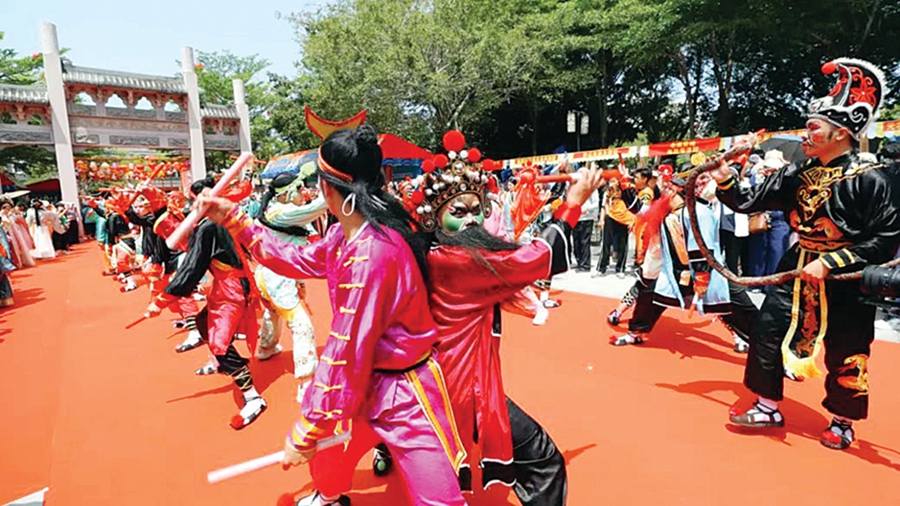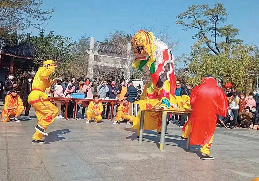 市級(jí)非遺項(xiàng)目惠東梁化藍(lán)氏集藝館斗牛獅展演。