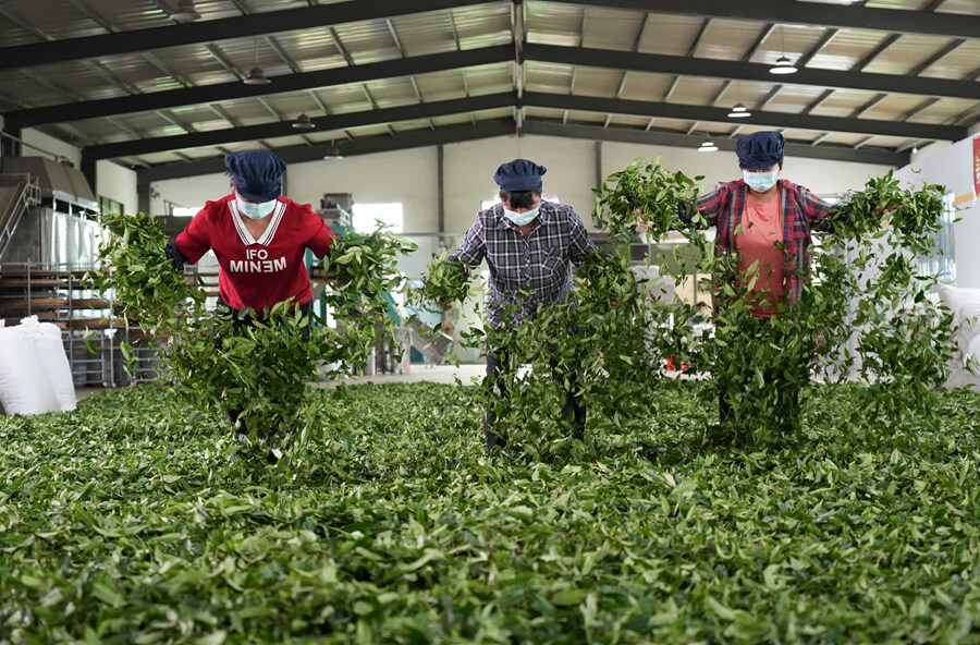 目前,毛茶種植成為了南昆山生態(tài)旅游區(qū)重點(diǎn)發(fā)展和推動(dòng)鄉(xiāng)村振興的特色優(yōu)勢產(chǎn)業(yè)!凹尤牒献魃缜,我們家茶葉產(chǎn)量很低!鄙鐔T陳吉花說,自2017年加入龍門縣南昆山云尖茶葉農(nóng)民專業(yè)合作社以來,合作社常常為茶農(nóng)們提供種植技術(shù)培訓(xùn),嚴(yán)格按照合作社要求開展種植后,茶樹長勢良好且產(chǎn)量比以前增加不少。