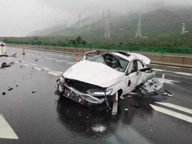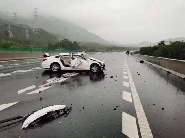 惠州市公安局交警支隊(duì)高一大隊(duì)警員進(jìn)行視頻巡查時(shí),在G15沈海高速公路汕頭2790公里處發(fā)現(xiàn)一輛白色轎車損傷嚴(yán)重,橫放在路上,正值下雨天能見度降低,情況十分危急,隨即通知附近巡邏警力和救援單位趕赴現(xiàn)場處置,防止二次事故發(fā)生。