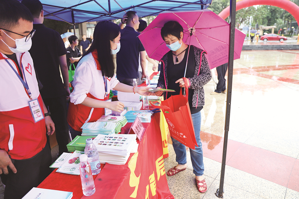 活動現(xiàn)場,工作人員向群眾派發(fā)宣傳資料。 惠州日報記者劉建威 特約通訊員李佳曉 攝