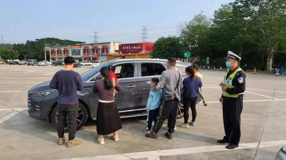 據(jù)駕駛員稱,車上人員都是親戚,兩家人約好周末帶小孩去惠東游玩,路過汝湖服務(wù)區(qū)時(shí)短暫停留休息。面對(duì)交警的檢查,駕駛員有些不解:“三個(gè)孩子都還小,難道也算超員嗎?”民警給予耐心解釋,并對(duì)其超員違法行為依法作出處罰,最后將其中的3人轉(zhuǎn)移至警車內(nèi)并引導(dǎo)駕駛員從收費(fèi)站內(nèi)駛出離開高速,對(duì)超員人員做轉(zhuǎn)運(yùn)處理。