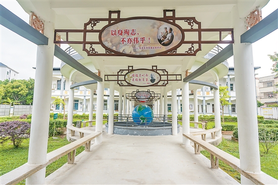 “原來的校門較為簡單,只砌了兩邊的磚柱,安裝了鐵門。后來考慮到校門的美觀,以及學(xué)校功能的需求,2022年由鹿頸村委會籌資重建校門!毖葸_(dá)學(xué)校校長林淑軍介紹,如今學(xué)校的心理輔導(dǎo)室、體育器材室、保安室等功能室安置于此,校門的社會屬性、實(shí)用功能、裝飾美化得以展現(xiàn)。