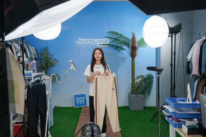 真維斯電貿(mào)直播基地,主播在直播帶貨。