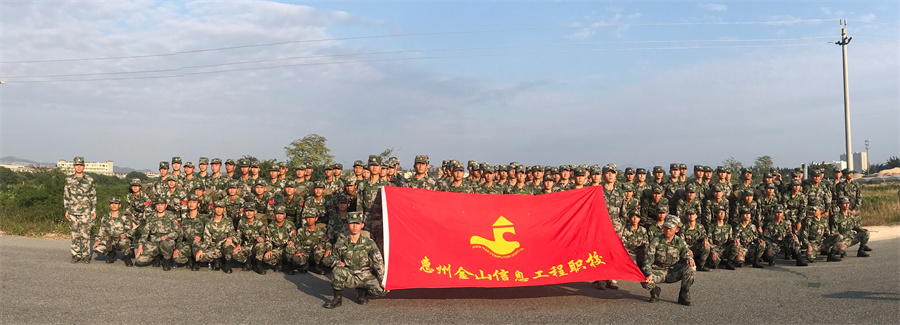 惠州市金山信息工程職業(yè)技術(shù)學(xué)校國防教育特色專業(yè)學(xué)生合影。