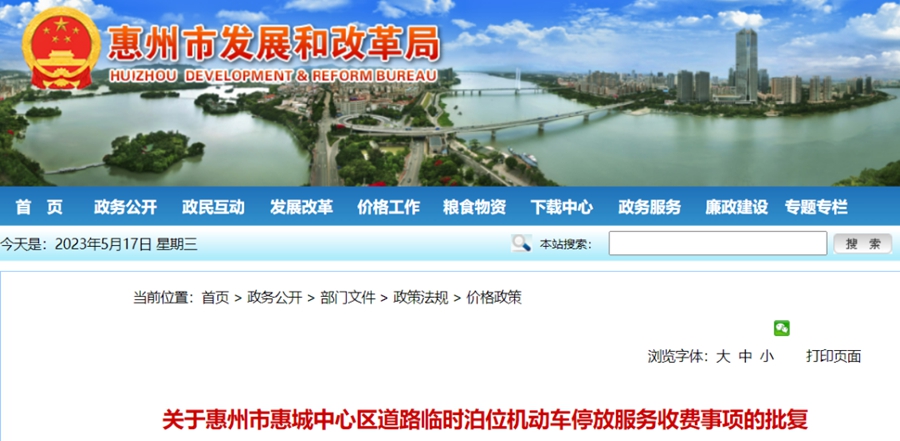 本批復(fù)自2023年4月28日起執(zhí)行,《關(guān)于惠州市惠城中心區(qū)道路臨時泊位機(jī)動車停放服務(wù)收費(fèi)有關(guān)問題的批復(fù)》(惠市發(fā)改價格〔2021〕46號)同時廢止。
