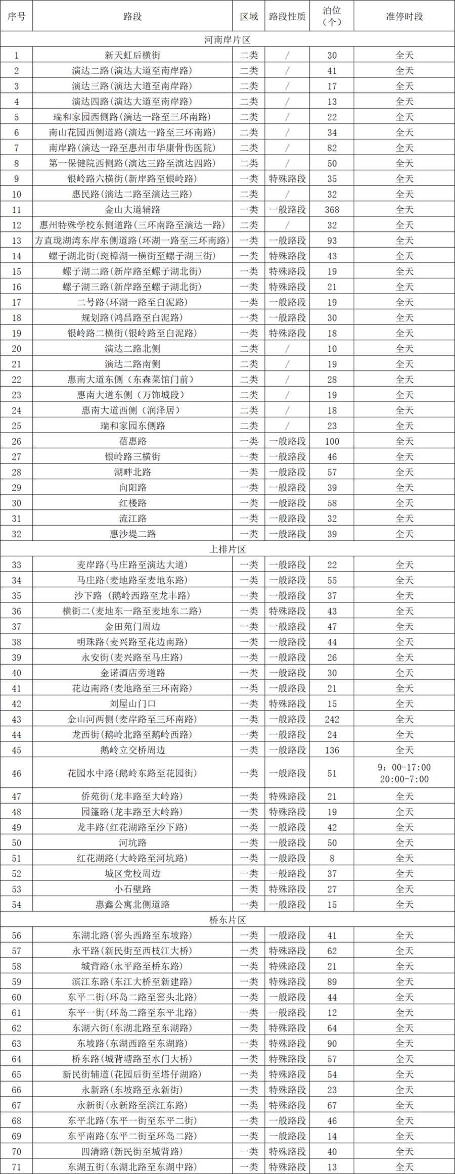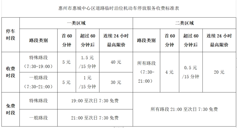 惠城中心區(qū)8488個道路臨時泊位(見下圖),以及今后新增的道路臨時泊位納入收費(fèi)范圍。道路臨時泊位實(shí)行動態(tài)管理,收費(fèi)路段及道路臨時泊位設(shè)置以市公安局交通警察支隊核定為準(zhǔn)。