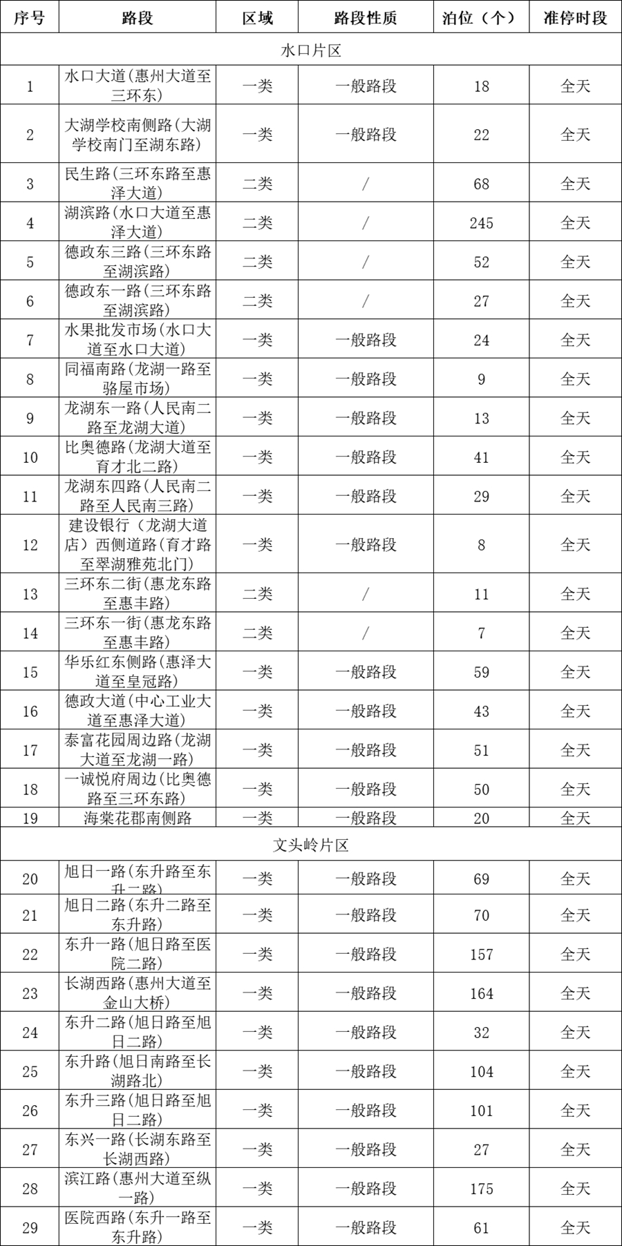 水口、文頭嶺片區(qū)(共1757個泊位,其中水口片區(qū)19條路段,797個泊位;文頭嶺片區(qū)10條路段,960個泊位)