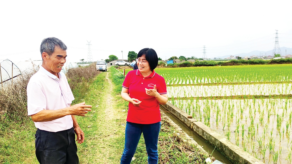 初夏時(shí)節(jié),萬(wàn)物生機(jī)勃發(fā)。走進(jìn)惠城區(qū)汝湖鎮(zhèn)圍仔村,一片片綠油油的稻田映入眼簾。得知“科技特派員”王國(guó)莉又到村里來(lái)了,村民楊益富放下身邊雜活,趕忙把她請(qǐng)到插滿青秧的田間,為剛插播即將富硒的水稻“把脈”。